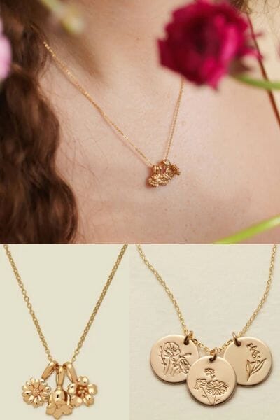 This beautiful Birthday Flower Charm Necklace by Made by Mary, featuring intricately designed floral silhouette charms for every month, each with a special meaning, this delicate chain carries the blooms that are special to any mom. You can choose her own birthday flower and flowers of each of her kids. The chain is 14kt or silver filled and the charms are gold vermeil. I also love this Birth Flower Stamped Disc Charm Necklace. I love all of the beautiful personalized jewelry from Made by Mary.