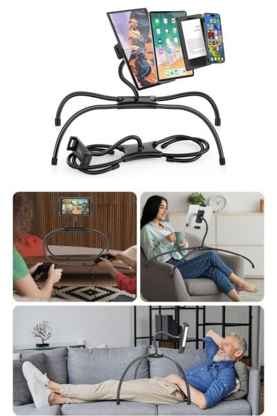 Enjoy hands-free reading in bed with this cool AboveTek iPad Adjustable Tablet Bed Stand versatile kindle holder stand; adjust the clamp downward to avoid the home button. Ideal for stable video recording and live streaming on YouTube or TikTok. An ideal gift for avid readers and content creators. Equipped with a universal ball clamp for 360° rotation and a flexible connecting rod, this tablet holder for bed allows adjustments in any direction, supporting any angle for optimal viewing comfort. ideal for avid readers, movie enthusiasts, and anyone who values adjustable convenience. The universal tablet stand accommodating devices from 4.7" to 15.6". The adjustable bracket holder expands from 4.6" to 10", Perfect for any iPads, Kindles, phones, and portable monitors, it ensures comfortable viewing angles in any setting—be it reading or watching videos.