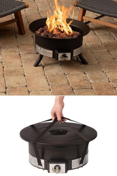 Relax and get cozy anywhere with this affordable Amazon Basics Portable Propane Fire Pit with Carrying Strap. Add warmth and ambiance to a back deck, patio, or outdoor living space with this portable fire pit. You can even take it anywhere that allows a firepit like camping or the beach! Made of durable steel with a black high-temperature finish, this outdoor gas fire pit provides long-lasting performance and resistance to wear. This 19-inch outdoor fire pit is equipped with a 55,000 BTU stainless steel burner, delivering consistent and powerful heat. This outdoor fire pit runs on a 20-pound LP gas tank (not included) and come with a carry strap for easy transport.