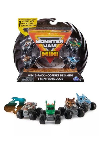 Younger boys will love this cool set of 5 Monster Jam Minis! Create your own mini event on a whole new scale with the official Monster Jam Mini 5-Pack trucks! Compact and small, these 1:87 scale mini monster trucks are packed with awesome details, ready for epic Monster Jam action! This pack includes Megalodon, Dragon, Zombie, Horse Power and a Mystery Mini Truck! Tear into the Mystery Mini to reveal your truck – you won’t know which Monster Jam Mini is inside until you open it up! Once you’ve discovered your new mini–Monster Jam truck, smash, bash and crash and create your own Monster Jam course!