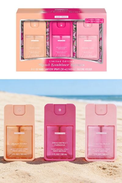 These viral Scent Theory hand sanitizers are so popular and affordable. I even grabbed this $10 gift set for me and I know teachers will love it. This Scent Theory Gift Set includes three popular spray hand sanitizers and a silicone clip keychain holder that is perfect for clipping on a bag or purse.