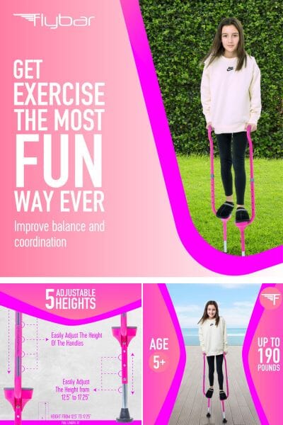 Keep your kids busy outside and improve their coordination and balance with these fun Flybar Maverick Walking Stilts for Kids. These cool stilts are ergonomically designed to make learning how to stilt walk easy. Easily adjustable arm and footrest heights- The footrest height is adjustable from 12 ½” to 17 ¼” and can also easily adjust to arm height depending on how tall you are. Full length of the Maverick Stilts is 72”.