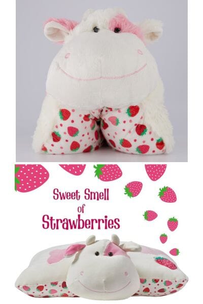 These Pillow Pet Puffs are still so cool and puffier and stretchier than the originals! This Pillow Pets Puffs Strawberry Scented Cow would make a cute, affordable Valentine's Day Gift for boys and girls. Pillow Pet Puffs are the squishiest of squishies! Pillow Pets presents super soft, cute, & adorable stuffed animals that unfold into comfy pillows for sleep. This plush is a pal during the day, and then unfastens to become a pillow at night! It’s a comfortable travel friend for any child on road trips & airplanes, and can also can be used as boy & girl bedroom decoration. I also love this cute Highland Cow Pillow Pet. You can also find lots of Pillow Pet animals and characters on Amazon.