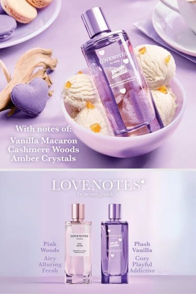 Ariana Grande branded scents are super popular with the teens and her newest Love Notes Fragrance is heavenly! Plush Vanilla by Ariana Grande is part of the Love Notes collection and is centered on a vanilla accord, complemented by creamy sandalwood, warm amber, airy orange blossom, sugared petals, and cashmere woods. The scent aims to evoke a soft and cozy vanilla experience, with a modern gourmand character. There is also a Love Notes Pink Woods fragrance in this collection with top notes of Bergamot and Lotus; middle notes are Tea, Vetiver and Jasmine; base notes are Cashmere Wood, Cotton Candy and Tonka.