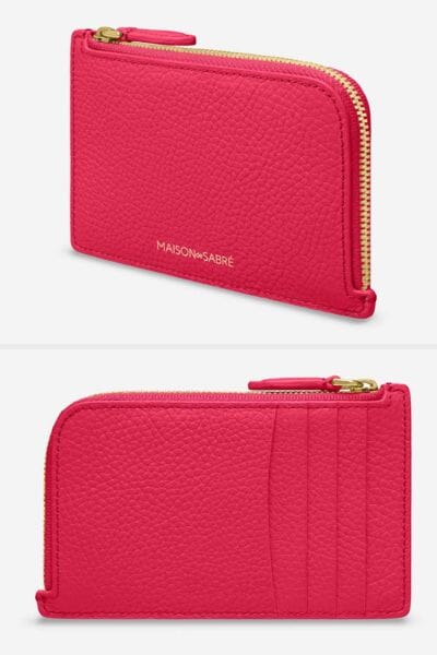 This beautiful Maison De Sabre Zip Card Holder Case makes for a beautiful and high quality gift for any woman! A slender and secure sleeve that discreetly stores pay essentials, the Zip Card Holder carries more than meets the eye. The dynamic streamline design features room for up to four cards on the rear, with a separate zipped pouch for coins and space for folded notes in an ultra-refined profile. Crafted from full-grain pebbled leather and arriving in our bestselling colourways, it’s minimalistic stowage for elegant go-getters. It comes in lots of beautiful colors, but I love this Shibuya Fuchsia!