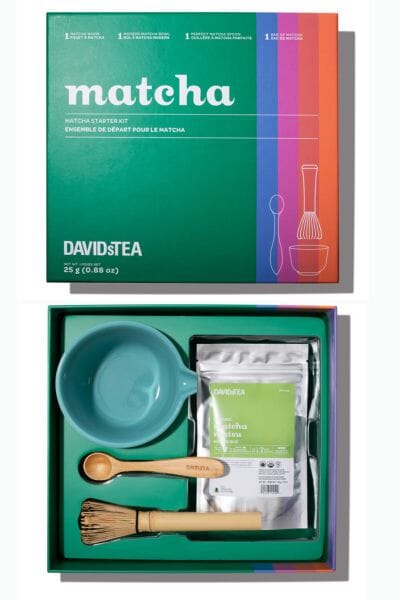 Matcha makes a great gift for Mom and DavidsTea is one of my favorites. This Matcha Starter Kit Gift Box is your one-way ticket to creating frothy matcha like a pro. This set includes a 25 g bag of creamy Organic Matcha Matsu green tea powder into a giftable box with a lightweight matcha bowl, our Perfect Matcha Spoon and a bamboo whisk, for everything you need to whip up matcha in the traditional way.