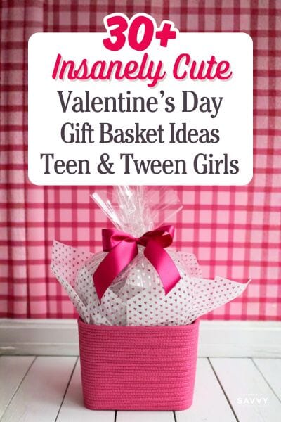 Gift baskets are super popular right now with the tween and teen girls and we have 30+ adorable Valentine’s Day Gift Basket Ideas to make her day special. As your girls grow older, it can be more difficult to choose out things that they like and adorable gift baskets make such unique tween or teen valentine gifts. This huge list of ideas includes some of the cutest gift basket ideas along with a list of fun and affordable things to include in your tween or teen’s gift basket.