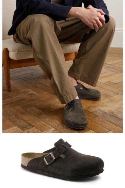 So many guys are loving the laid back style of these Birkenstock Boston Clogs. This classic slip on style has a natural-cork and latex footbed ensures proper weight distribution and support in a comfy clog designed to stimulate circulation and improve balance. Choose from leather or suede in several great colorways.