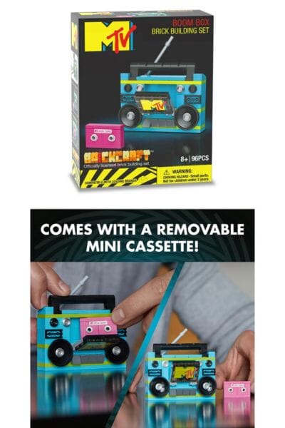 Your tweens can embark on a retro journey with this small Brickcraft MTV Retro Blue Boom Box Brick Building Kit. Transport yourself back to the golden era of music as you assemble a vintage MTV Boom Box. This build pays tribute to the decades of music and MTV, bringing a touch of realism and interactive play with the separate cassette tape snugly fitting into the boom box's door. This set is more than a building activity, it's a nostalgic collectible from the iconic MTV era, making it a cherished piece for music enthusiasts, nostalgia lovers, and brick builders alike.