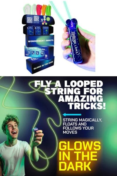 This amazing Zipstring Luma, the string that does tricks and floats and glows in the dark too, is so cool! Prepare for a thrilling adventure as you discover the magic of launching and guiding a loop of string through the sky. It's all about how you move that makes it move too! Learn about tension, gravity, lift, and drag to make the string perform incredible tricks in the air. With a super smart design that lets you do tricks like a pro, the ZipString is your ticket to an awesome experience. Don't miss out—grab your ZipString today and get ready for some serious fun! Be sure your kids practice holding this cool Zipstring at the perfect angle for optimal fun!